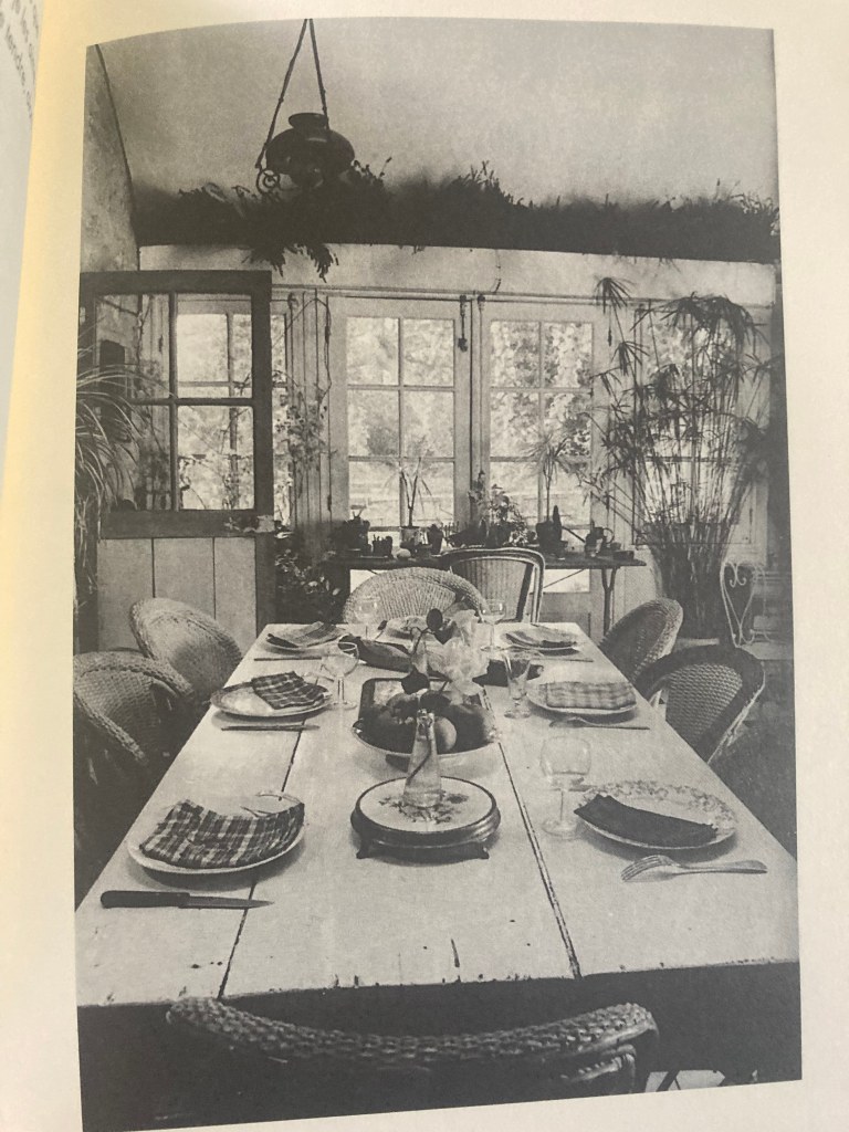 Voilà, elle a dressé une jolie table pour ses amis partis marcher dans la campagne avoisinante. Elle examine la cuisson. Ce n’est pas seulement cuisiner, manger, cette fonction vitale, c’est surtout une façon de voir la vie.