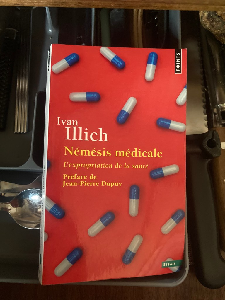 Cette dernière phrase m’a particulièrement marquée. Si les gens, vous, moi, nous tous, n’avons plus besoin d’être malades pour devenir patients, cela signifie bien que nous sommes tous des malades potentiels. Nous transportons en nous le germe que Big Pharma va déceler, puis négocier. Laissez tomber le yoga, le jogging, la salle de sports, la méditation, la marche, les produits naturels, in fine, les maladies se frottent les mandibules et nous attendent en ricanant devant notre naïveté. Plus sérieusement, la thèse de l’auteur confirme, qu’au delà d’un seuil financier, le développement de la santé nui à la santé. Pour cela, il analyse entre autres, la religiosité, la sacralité mise en scène par le système médical. Le surdéveloppement des examens préventifs crée les maladies. Illich pousse son analyse jusqu’au mythe de l’immortalité, et tout cela en 1974, si loin, si proche du transhumanisme.